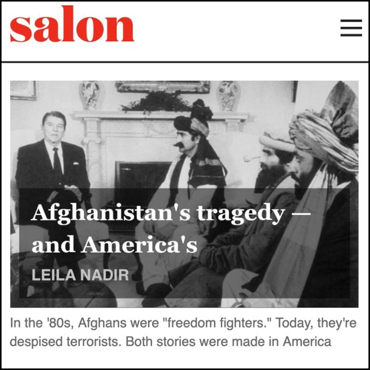 "Afghanistan’s Tragedy: From Reagan’s 'Nation of Heroes' to Trump’s 'Hellhole on Earth.'” Salon.